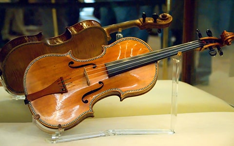 17世紀に活躍した名工アントニオ・ストラディバリが手がけた「ストラディバリウス」。この広間では、世界最大規模とされるストラディバリウスの弦楽器コレクションをご覧いただけます。音楽の歴史と芸術性が詰まった特別な空間です!