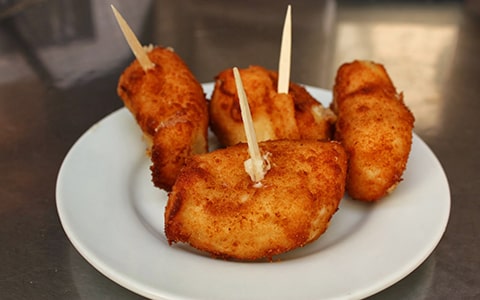 ほんのり塩気が効いたタラの切り身をカリッと揚げたマドリード名物!中はふわふわでジューシー。すり身コロッケも絶品で、クリーミーな味わいにやみつき間違いなし!