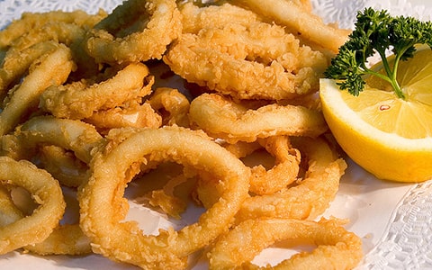 マドリードっ子の定番タパス!サクッと軽い衣に包まれたイカフライは、レモンをかけて食べるのが王道スタイル。ビールが止まらなくなる美味しさです!